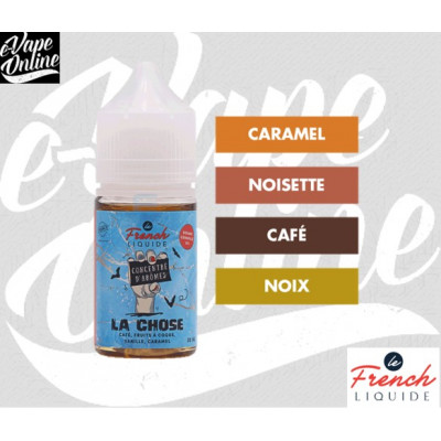 L'arôme Concentré LA CHOSE 30ml de Le French liquide - caramel au beurre salé - noisette grillée, suivis de près par le café, pour finir sur des notes de noix de pécan et de vanille