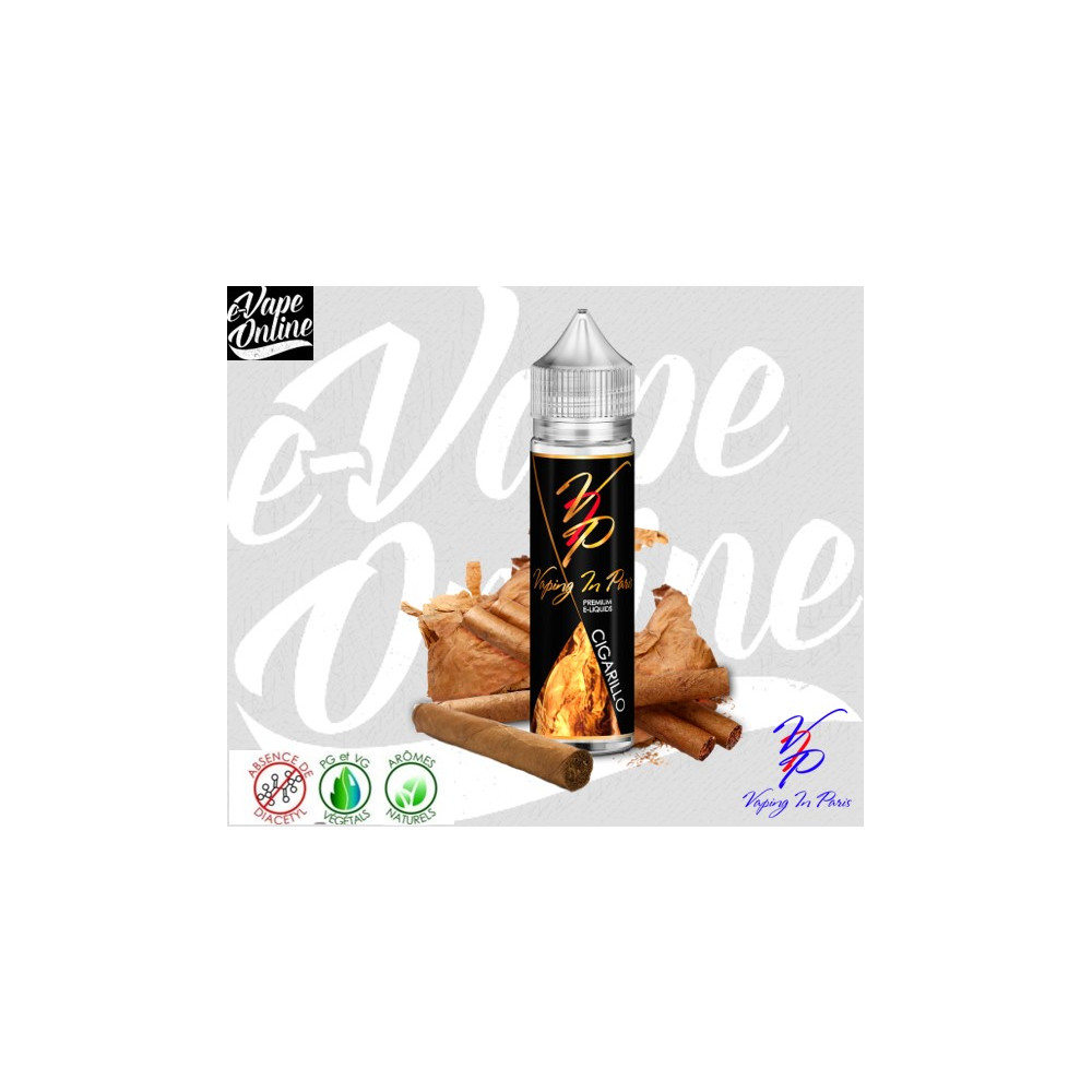 L'e-liquide Cigarillo 50ml Vaping In Paris est une saveur douce du cigare de la Havane, pour les amoureux des cigares et des cigarillos.