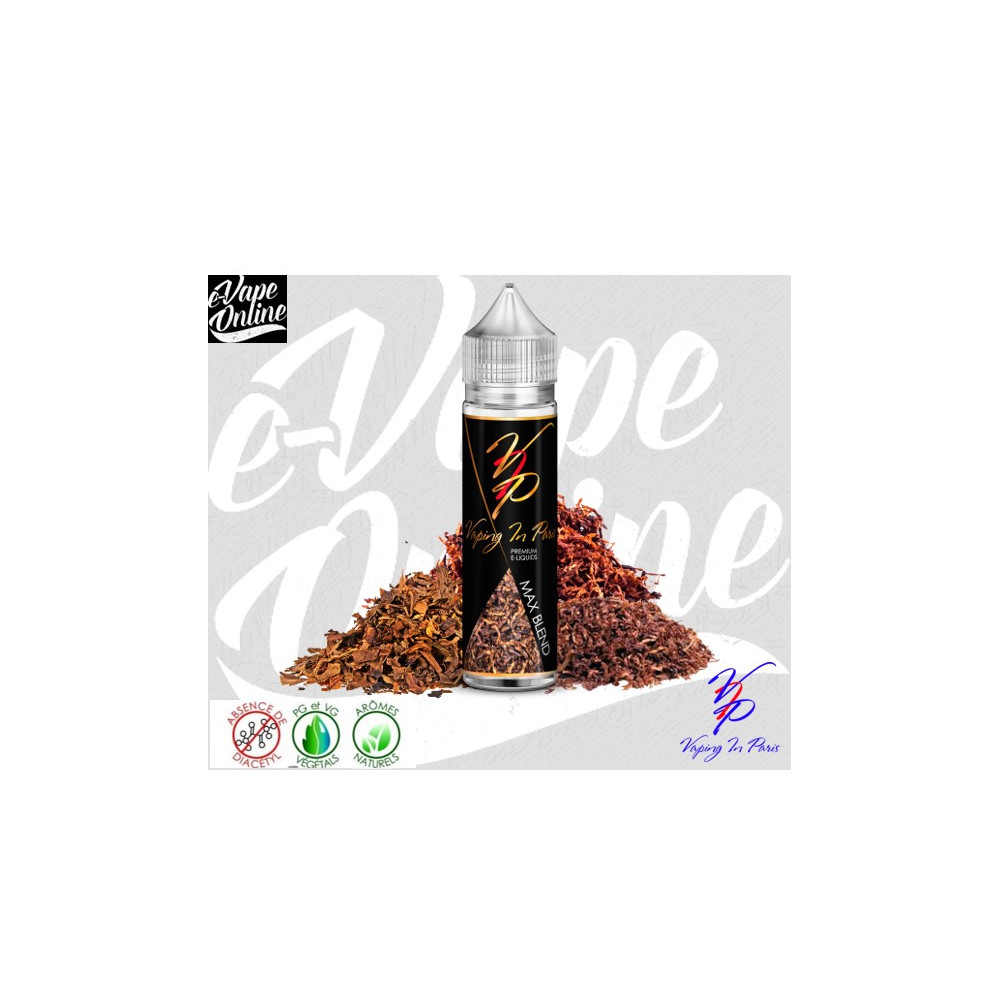 L'E-Liquide Max Blend 50ml Vaping in Paris est un "classic" au mélange équilibré de tabac blond et brun, rehaussé de notes ambrées et boisées.