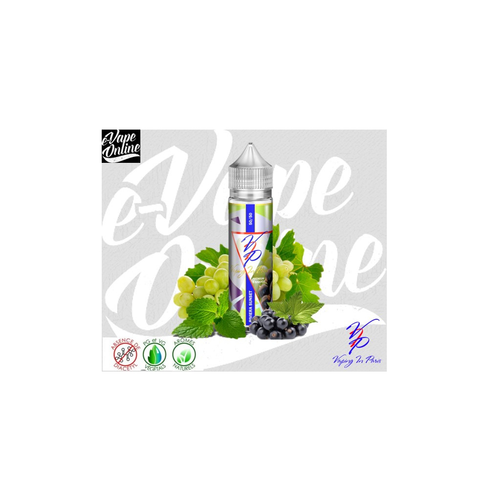 L'e-liquide Riviera sunset Vaping In Paris est un mélange acidulé et fruité de raisin et de cassis avec des notes de menthe fraîche.