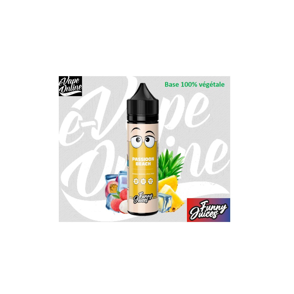 L'Eliquide PASSIOON BEACH de FUNNY JUICES: De la passion❤️🔥, un ananas acidulé🍍, une pointe de goyave sublimée de litchi.