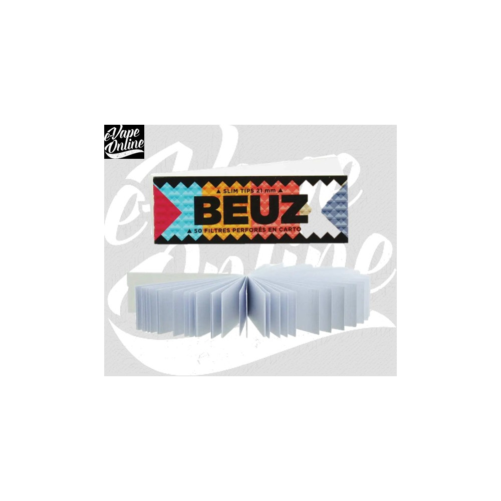 les filtres perforés BEUZ en carton blanc, format slim tips 21mm contient 1 boite de 50 filtres tips premium. La perforation précise et la qualité du carton garantissent un roulage facile et régulier.