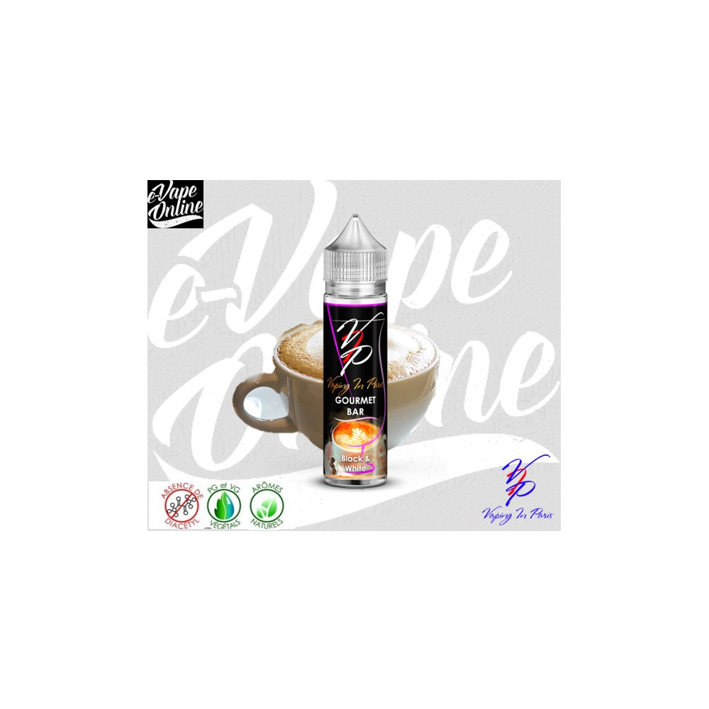 L'e-liquide BLACK & WHITE 50ml Vaping In Paris est un e-liquide à l'arôme incroyable de cappuccino avec des notes distinctives de vrai café et de la crème sur le dessus.