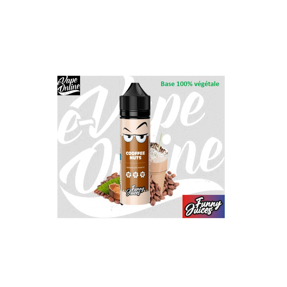 L'Eliquide COOFEE NUTS 50ml de FUNNY JUICES est une gourmandise à la crème de café ☕️ associée d’une noisette 🌰